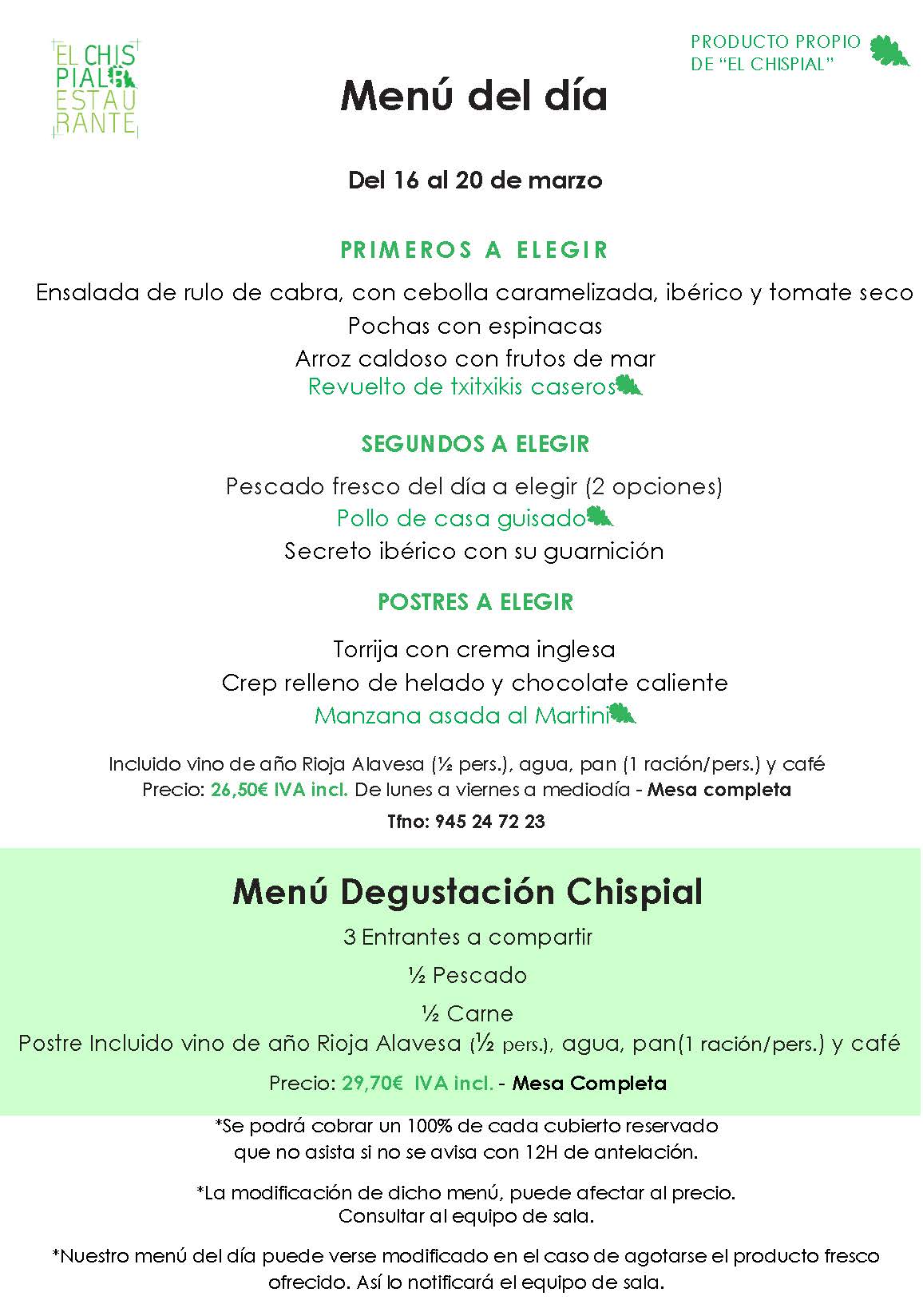 Comidas: Toda la semana.